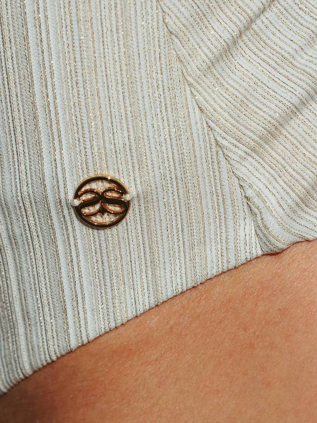 Этот удлиненный купальник выполнен из мерцающей ткани актуального оттенка шампанского. Элегантный фасон с запахом мягко драпируется спереди, подчеркивая фигуру и гарантируя роскошный загар после купания.