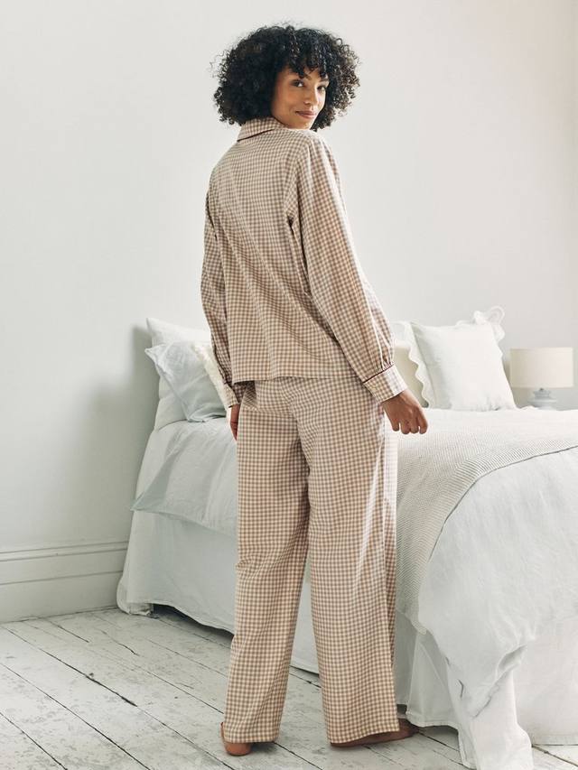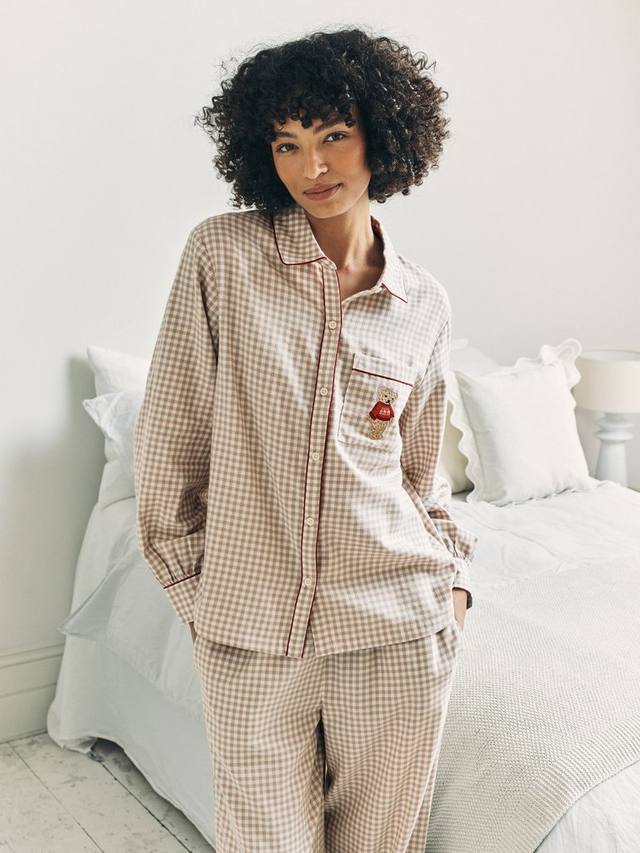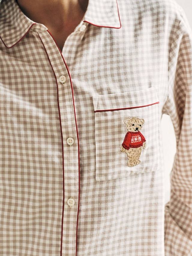Отпразднуйте наступление новогодних праздников в этом пижамном комплекте в клетку с вышивкой, изображающей кокапу Челси Пирс Чипа, наслаждающегося зимней лыжной прогулкой. Рубашка с воротником-стойкой и эластичные брюки из 100% хлопка дополнены контрастной окантовкой для создания элегантного праздничного образа. Удобный, дышащий и невероятно привлекательный, этот комплект идеально подходит как для праздничных вечеров, так и для рождественских утр. Классические нейтральные тона сочетаются с праздничным настроением.