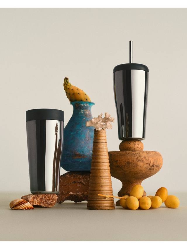 Дорожная кружка из зеркально отполированной нержавеющей стали, созданная совместно с французским дизайнером Орельеном Барбри. Она входит в коллекцию Sky и отличается органичной асимметричной формой.