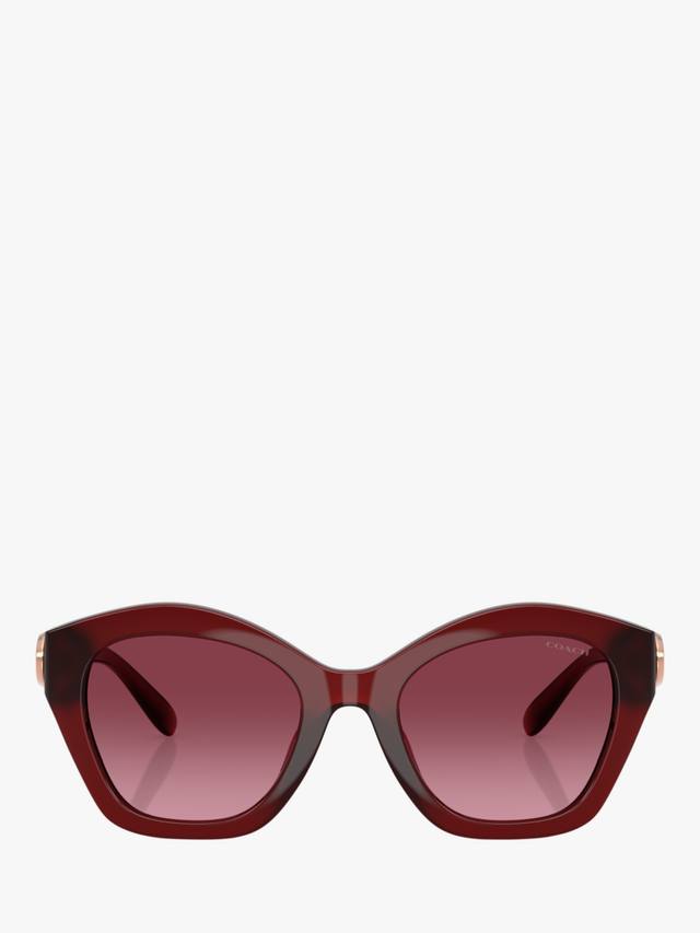 Эти нестандартные и культовые солнцезащитные очки Coach изготовлены из ударопрочного полиамида, обеспечивающего гибкость без ущерба для прочности. Они оснащены элегантными градиентными тонированными линзами.