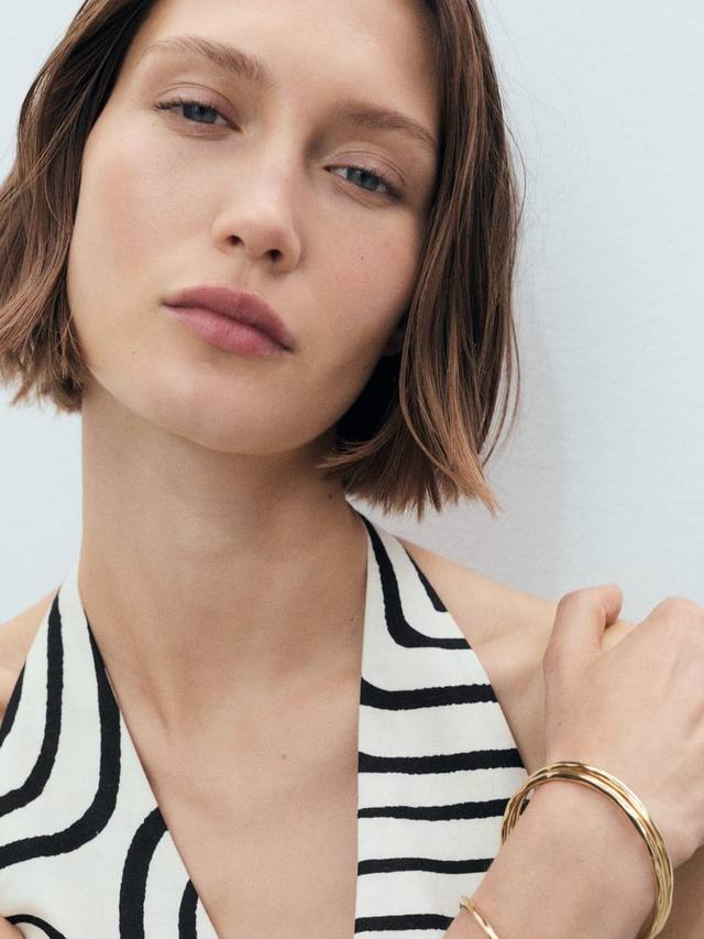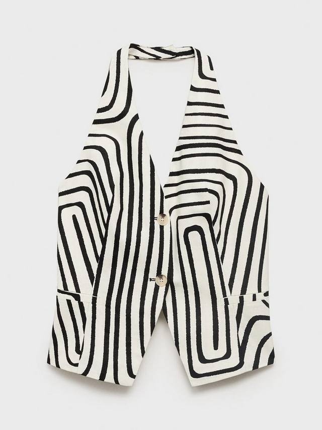 Жилет из высококачественного льна от Mango с американской проймой и стильным геометрическим рисунком.