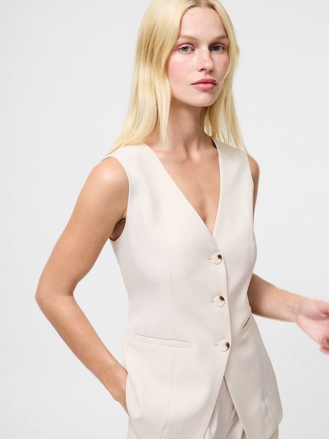 Чёткий крой, плавные движения. Жилет Imola Tailored с V-образным вырезом имеет глубокий V-образный вырез, рельефные швы и удлинённый подол с имитацией карманов для создания элегантного, структурированного образа.