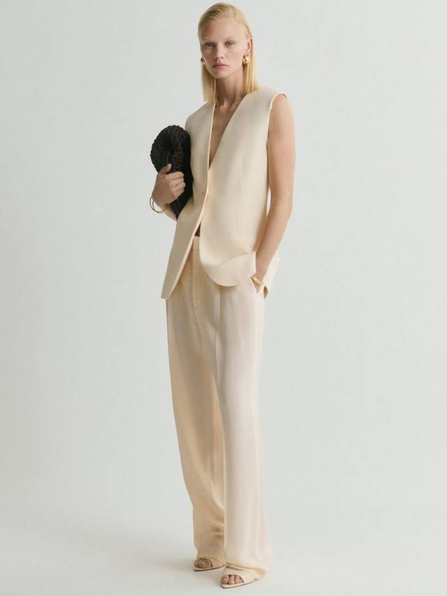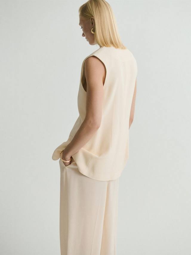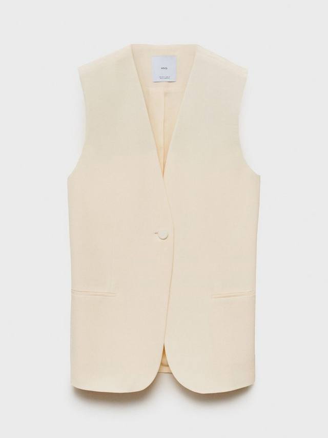 Этот легкий удлиненный жилет на подкладке обеспечит вам комфорт как с напряженного утра, так и для спонтанных планов. Он практичен благодаря игривому V-образному вырезу и продуманной застежке на пуговицы. Он идеально подходит для свежих идей на работе или для повседневных моментов.