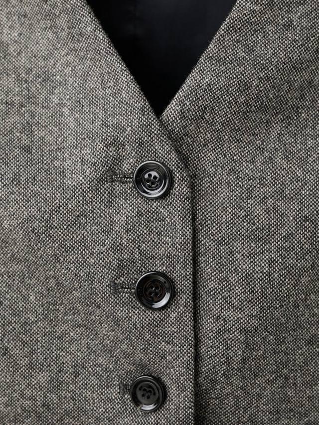 Этот жилет с V-образным вырезом сочетает в себе элегантную конструкцию и повседневную практичность. Шерстяная смесь обеспечивает надежное тепло, а четкий, простой крой украсит любой повседневный или повседневный образ.