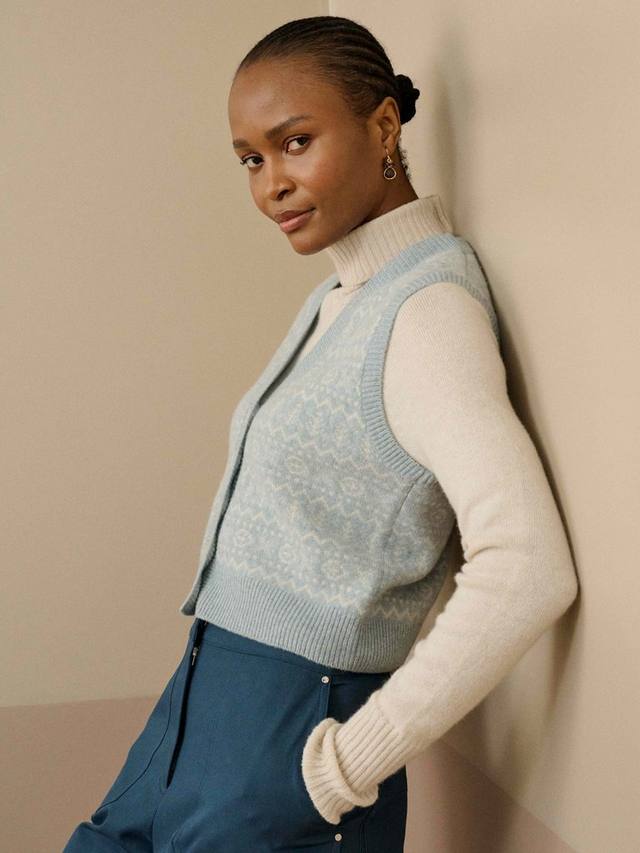 Этот жилет в стиле фэр-айл из тончайшей овечьей шерсти добавит изюминку вашему дневному образу, сочетая комфорт и яркий узор. Сочетайте его по своему вкусу для тепла и индивидуальности, какими бы ни были ваши планы.
