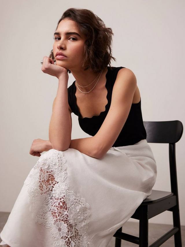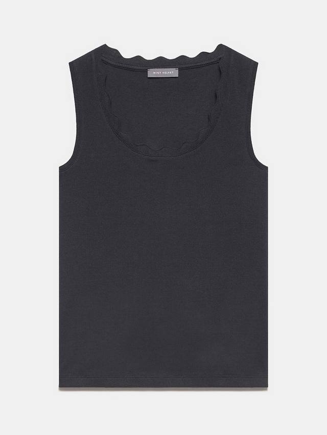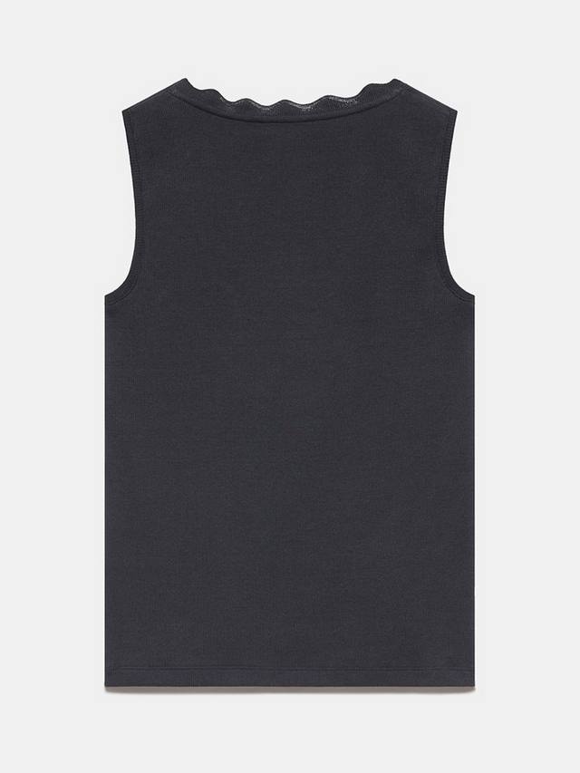 Топ-майка из ткани с высоким содержанием хлопка с круглым вырезом и фестончатой отделкой.