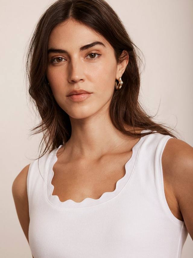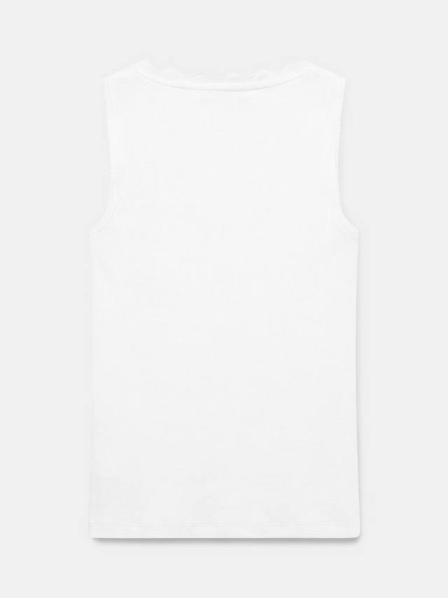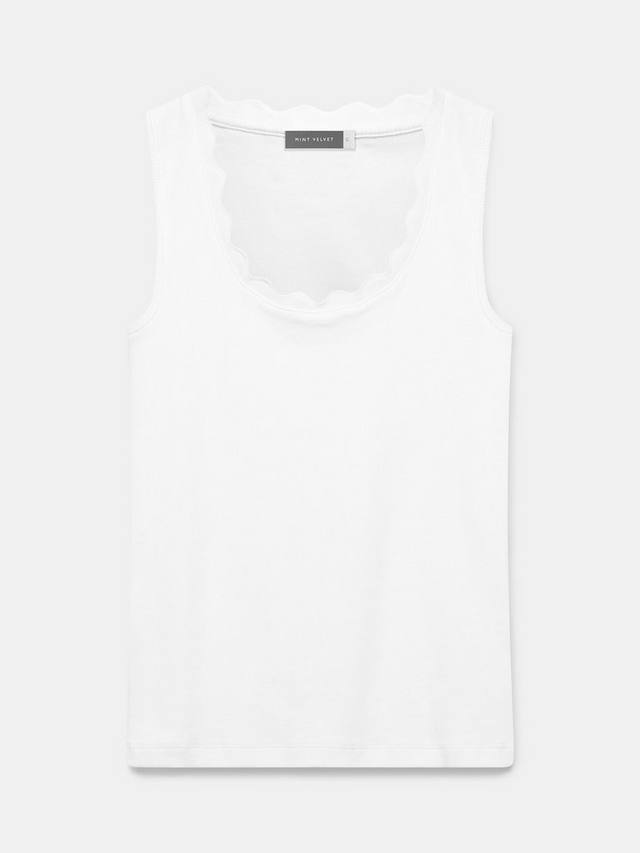 Топ-майка из ткани с высоким содержанием хлопка с круглым вырезом и фестончатой отделкой.