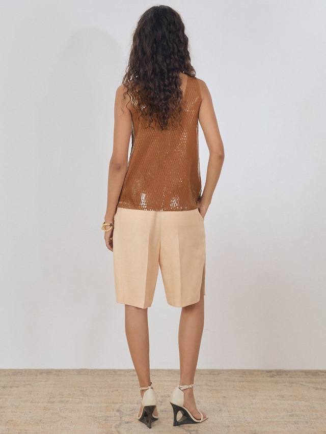 Эта майка от Reiss, ставшая неотъемлемой частью гардероба, сверкает металлическими деталями. Простой крой, с круглым вырезом и без рукавов, она сшита из лёгкой, но прочной ткани, обеспечивающей долговечность и готовой к новому сезону.