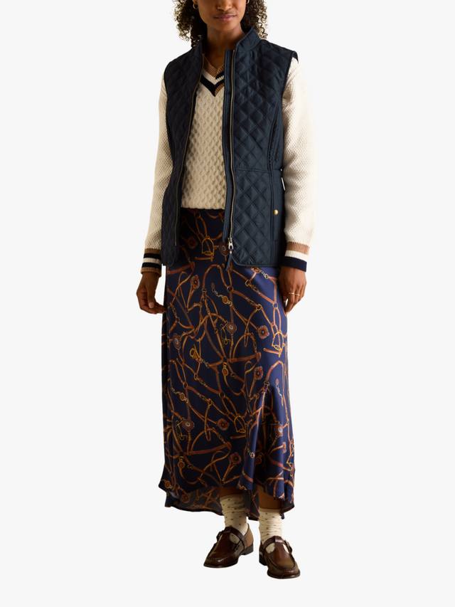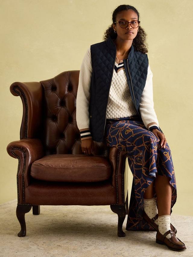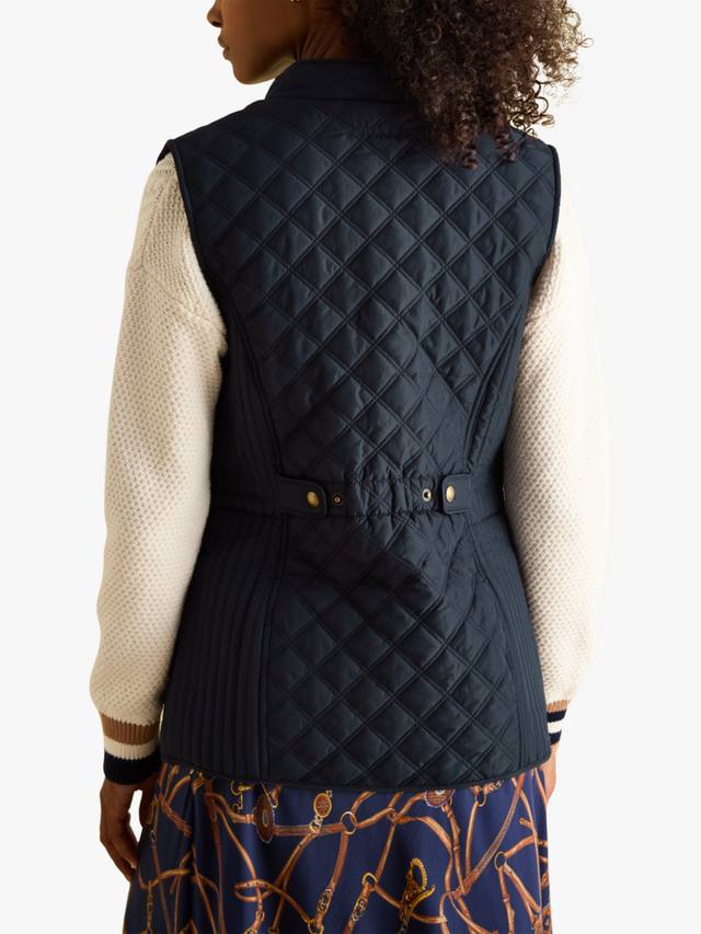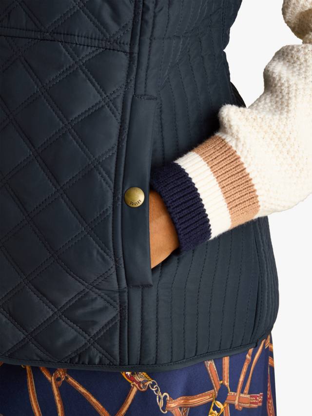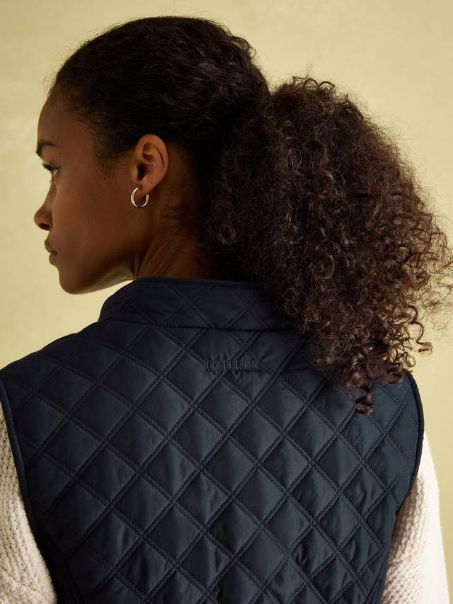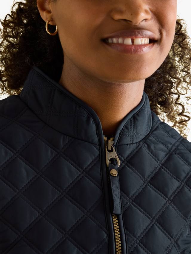 Эта ромбовидная стеганая куртка Joules, подчеркивающая фигуру, имеет надежную застежку-молнию, практичные передние карманы с клапанами на кнопках и регулируемую деталь на спинке. Сзади украшена культовой вышивкой Joules в виде зайца.