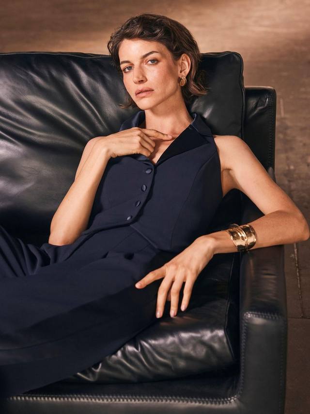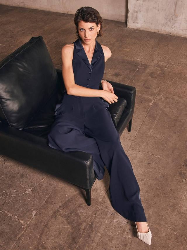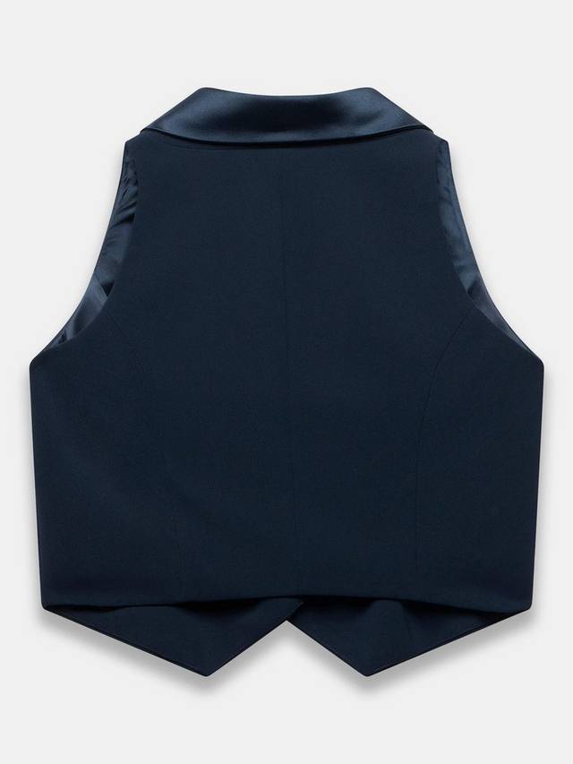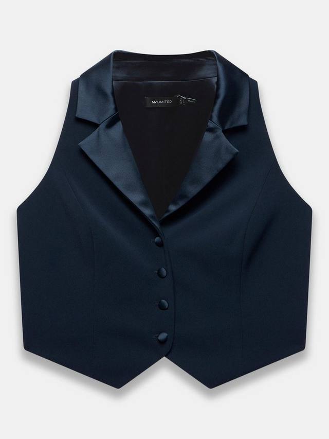 Легкий жилет с заостренными лацканами и застежкой на пуговицы спереди. На подкладке.