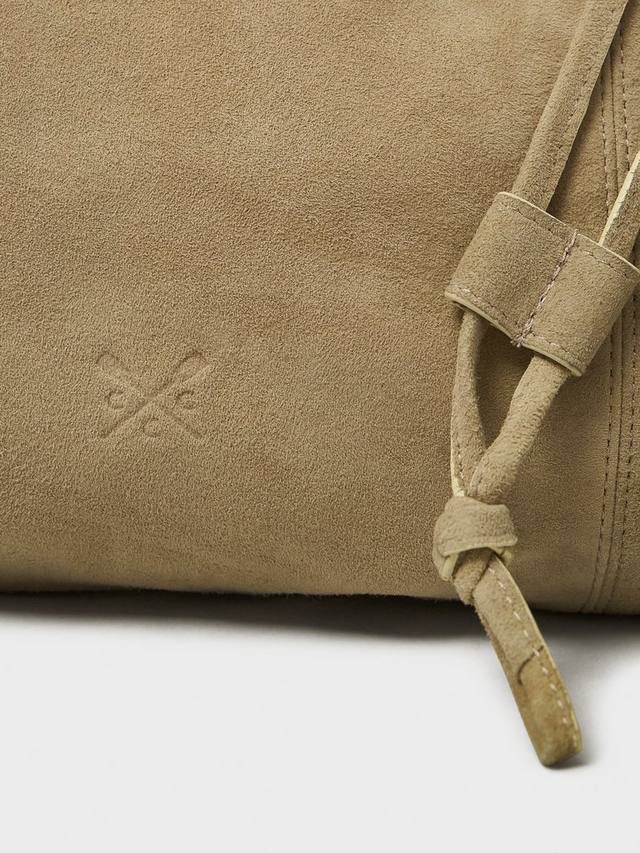 Замшевая сумка тёплого песочно-бежевого цвета. Лёгкая, на подкладке и вместительная, эта сумка с завязкой сверху идеально подходит для любого сезона. Удобный внутренний карман застёгивается на молнию, а ремешок позволяет носить сумку на плече или в руке. Тиснёный логотип Crew завершает образ.