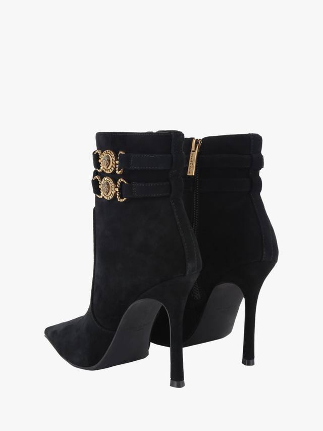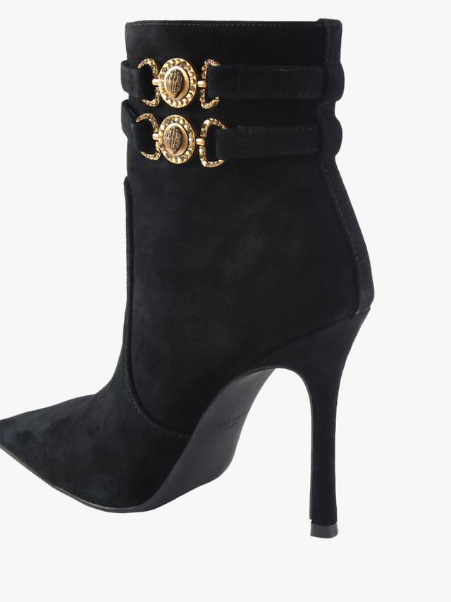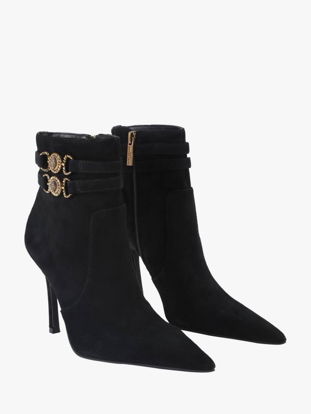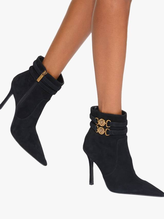 Пара ботильонов с острым носком, выполненных из гладкой замши. Эффектный каблук-шпилька сделает ваш образ повседневным и вечерним, обеспечивая комфорт и стиль, куда бы вы ни пошли.