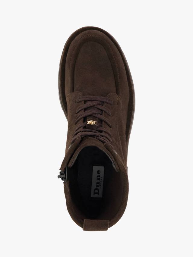 Замшевые ботильоны на шнуровке от Dune London. Каблук средней высоты обеспечивает комфорт на весь день, а закрытый круглый носок сохраняет ваш образ стильным и универсальным для любого повседневного случая.