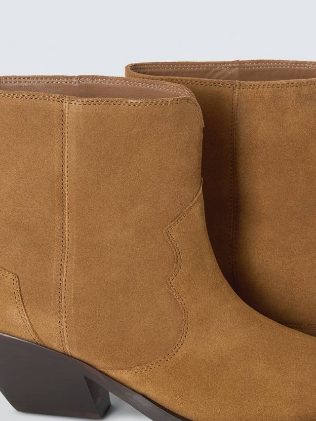 Promise — это элегантные ботильоны в стиле вестерн, которые представляют собой шикарный баланс между наследием и высокой модой. Структурированный силуэт, спущенный кубинский каблук и классический ковбойский носок выполнены из мягкой песочной замши, что делает их неотъемлемой частью капсульного гардероба.