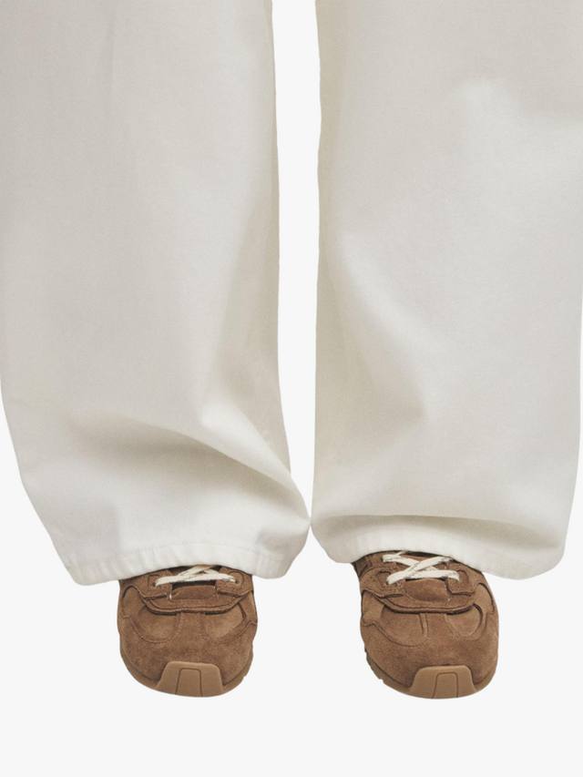 Эта модель демонстрирует низкий силуэт, коричневую резиновую подошву, мраморно-кремовые шнурки, которые добавляют контраста, и классические черты, такие как открытая строчка и логотипы.