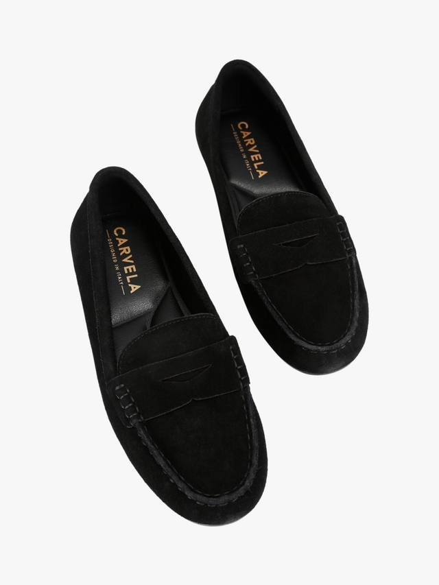 Замшевые лоферы на плоской подошве от Carvela. Элегантные, удобные и легко надеваемые, они сочетают в себе комфорт и стиль, позволяя вам двигаться с полной отдачей, куда бы вы ни отправились.