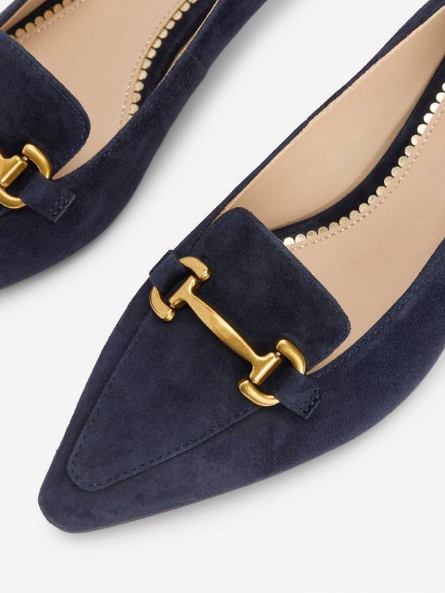 Эти замшевые лоферы Iris с острым носком, ремешком и симпатичным каблуком-рюмочкой — изысканный выбор. Они достаточно удобны для работы и элегантны для особых случаев.