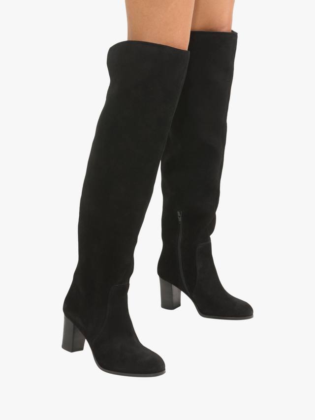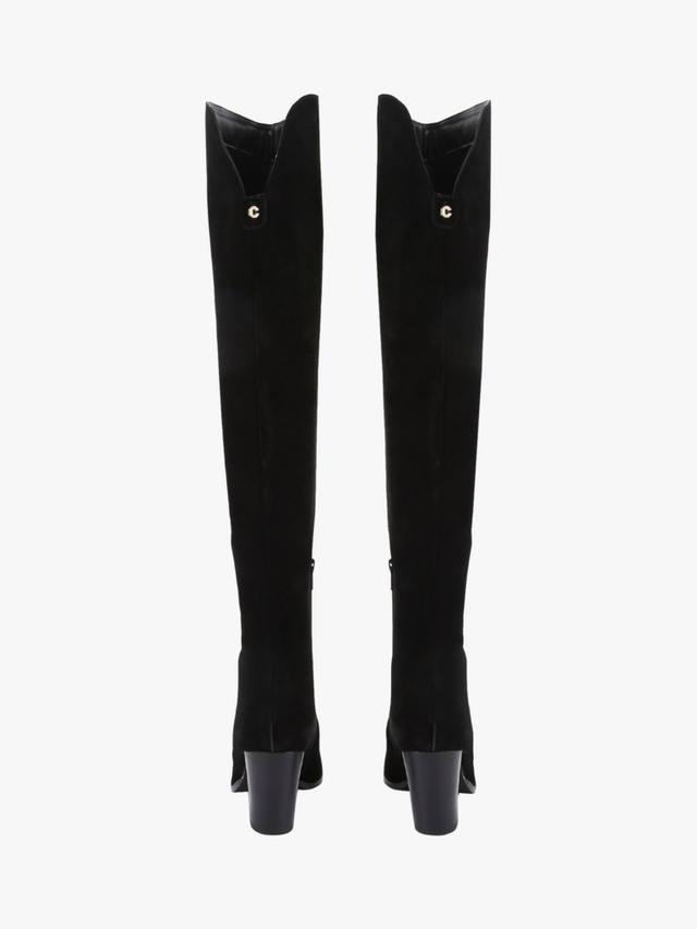 Пара ботфортов Carvela из гладкой замши. Каблук средней высоты обеспечивает постоянную высоту, миндалевидный закрытый носок сохраняет форму, а боковая молния обеспечивает удобную посадку.