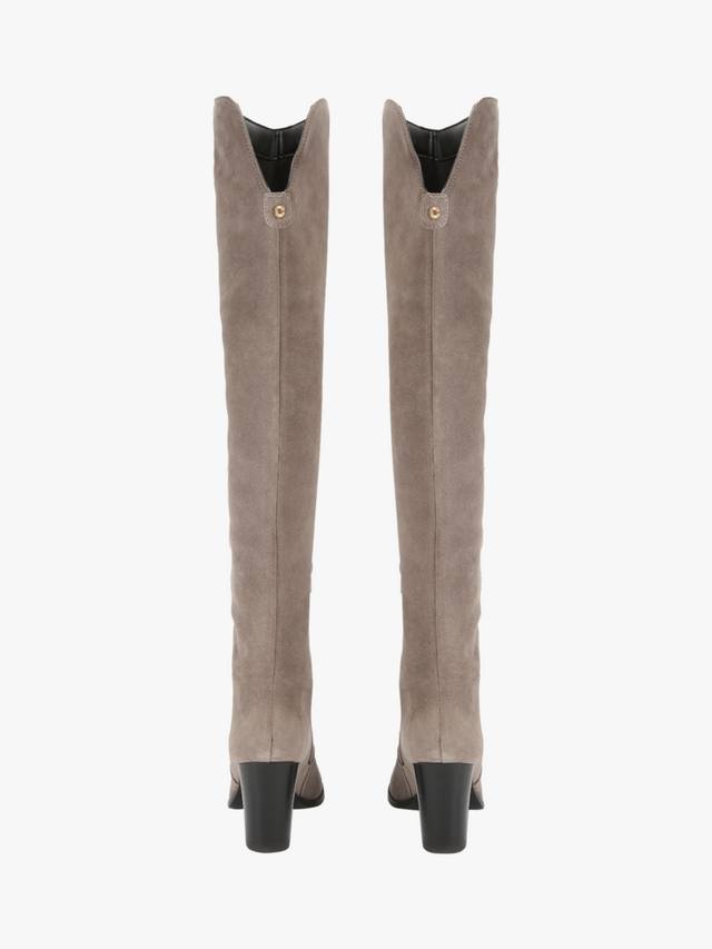 Пара ботфортов Carvela из гладкой замши. Каблук средней высоты обеспечивает постоянную высоту, миндалевидный закрытый носок сохраняет форму, а боковая молния обеспечивает удобную посадку.