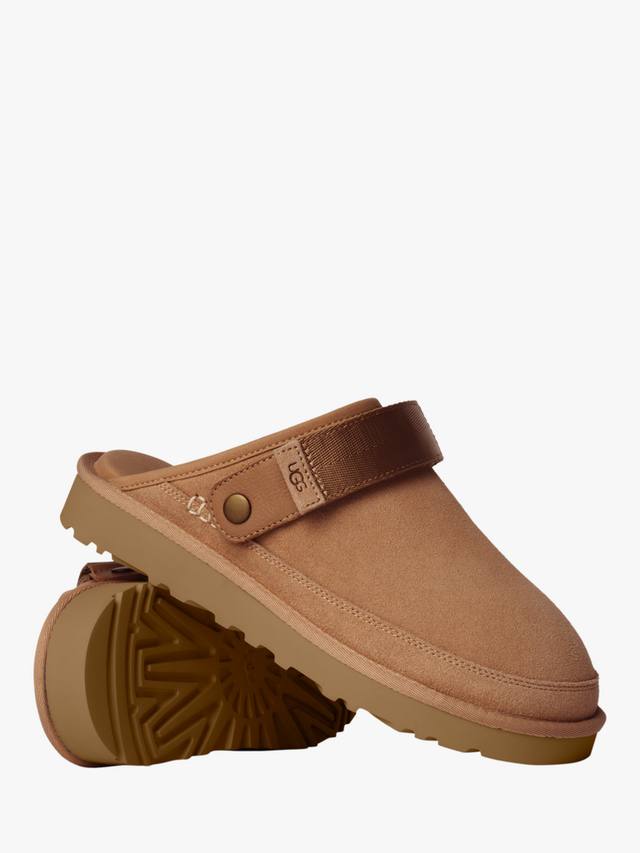 Эти тапочки с мягким замшевым верхом обеспечивают непревзойденный комфорт, а изящный логотип добавляет эстетики. Регулируемый ремешок на пятке обеспечивает идеальную посадку.