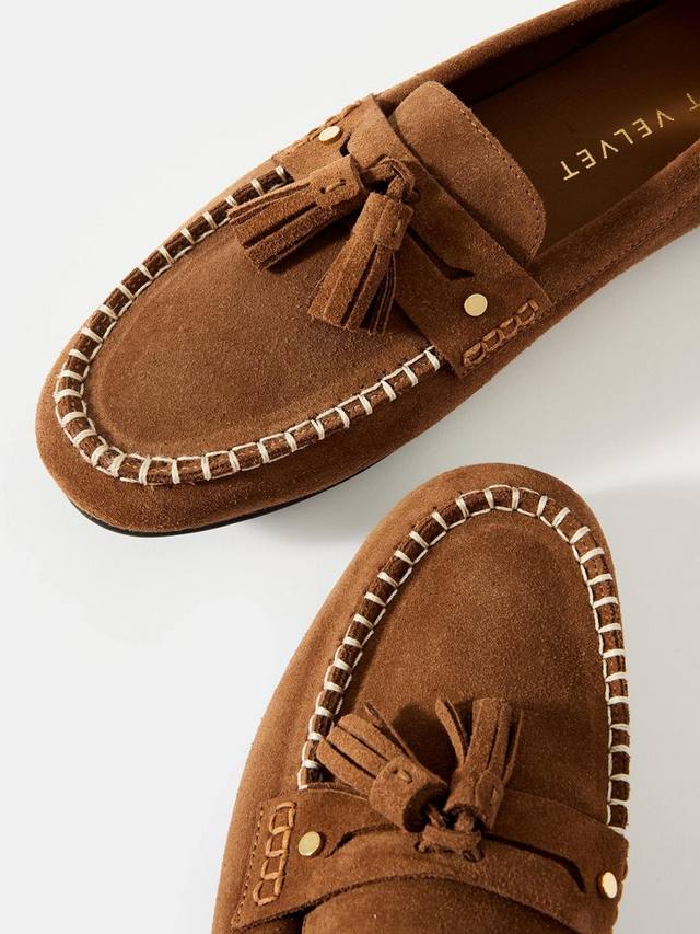 Замшевые туфли на плоской подошве от Mint Velvet с острым носком, веревочной отделкой, резиновой подошвой и застежкой на бант спереди.