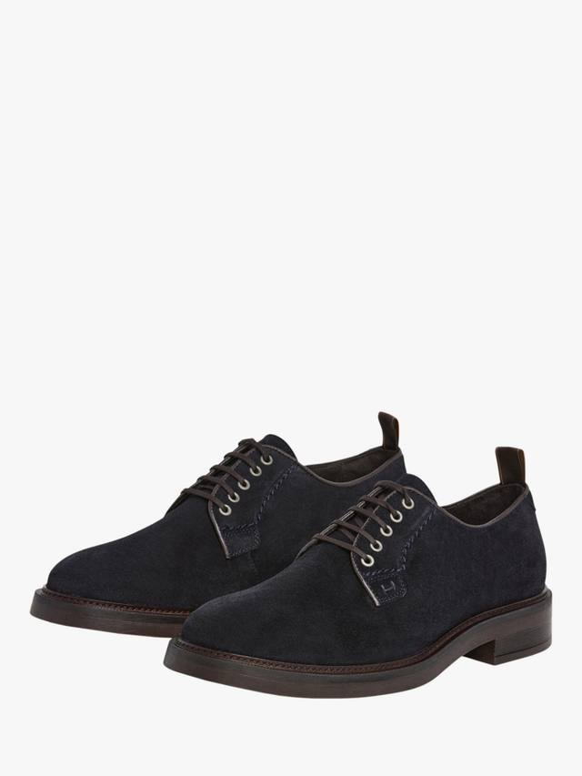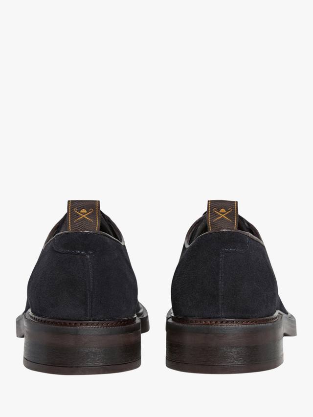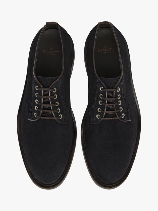 Hackett London представляет классические туфли дерби из мягкой замши с полированными люверсами и вышитым вручную узором для пущего эффекта.