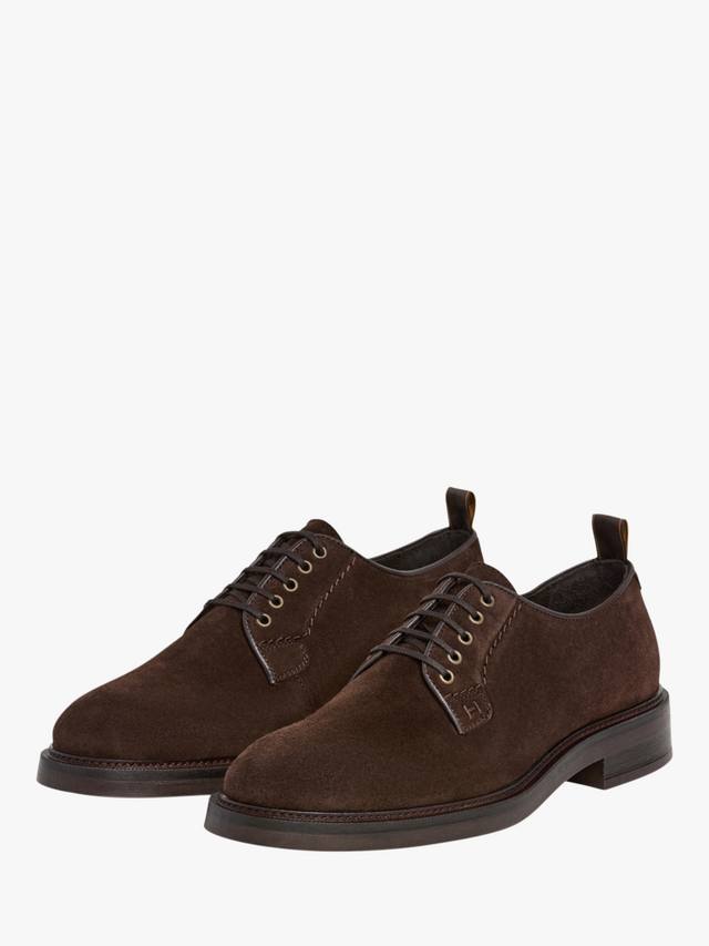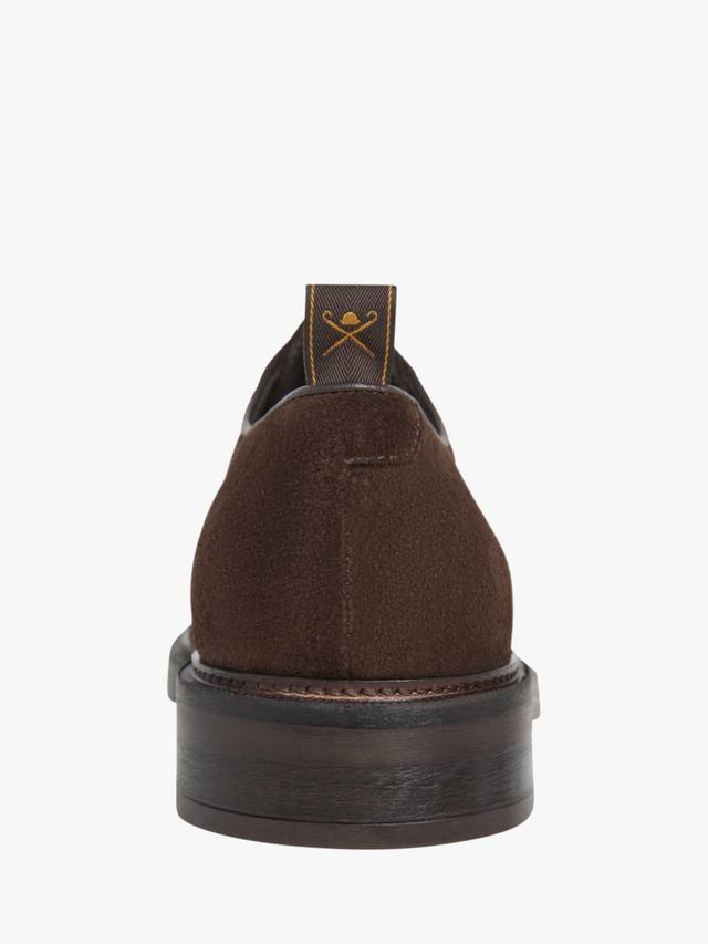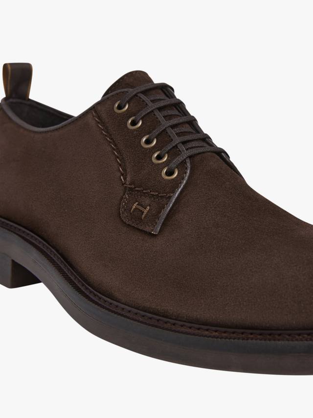 Hackett London представляет классические туфли дерби из мягкой замши с полированными люверсами и вышитым вручную узором для пущего эффекта.