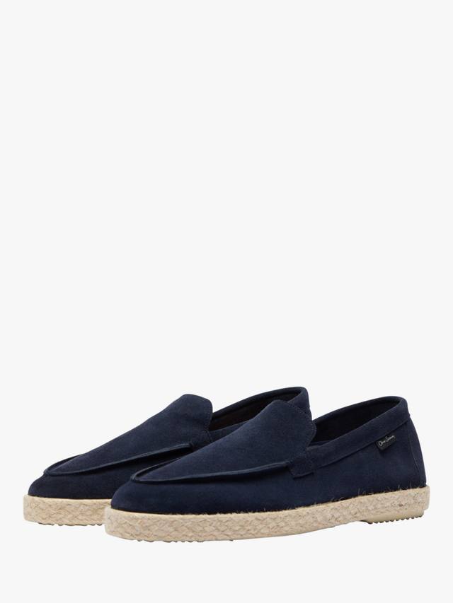Лоферы имеют вулканизированную подошву нейтрального бежевого цвета с джутовой окантовкой вместо традиционной цельной джутовой подошвы. Минималистичный верх выполнен из цельной полосы мягкой телячьей замши с тонким ворсом без подкладки с однотонным передником, сложенным верхом и двойным слоем на неструктурированном заднике. В комплекте с мягкой кожаной стелькой.