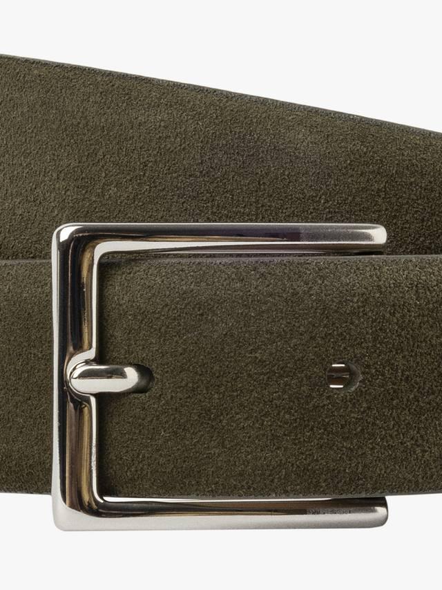 Добавьте нотку индивидуальности к элегантным нарядам с этим гладким замшевым ремнем с отделкой перьями и полированной серебряной пряжкой.