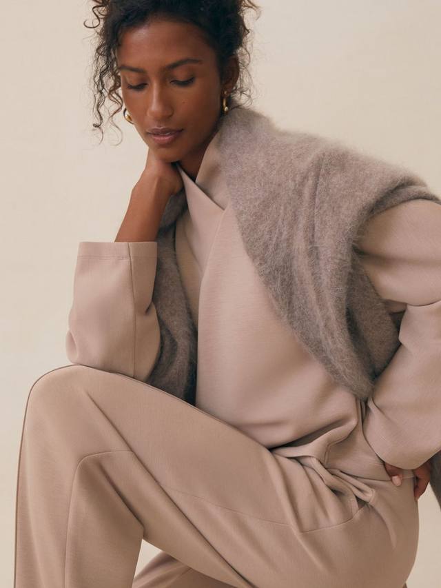 Пара зауженных книзу брюк-джоггеров от Reiss. Они рассчитаны на среднюю посадку и стандартную длину подола.