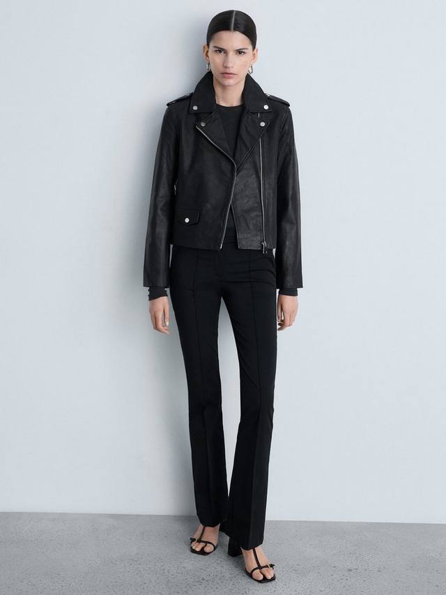 Представляем укороченную кожаную байкерскую куртку Mango, созданную для максимального комфорта и дополненную продуманными деталями на кнопках и молниях. Его воротник-хомут разработан для того, чтобы соответствовать вашему дню и выделяться, куда бы вы ни пошли.