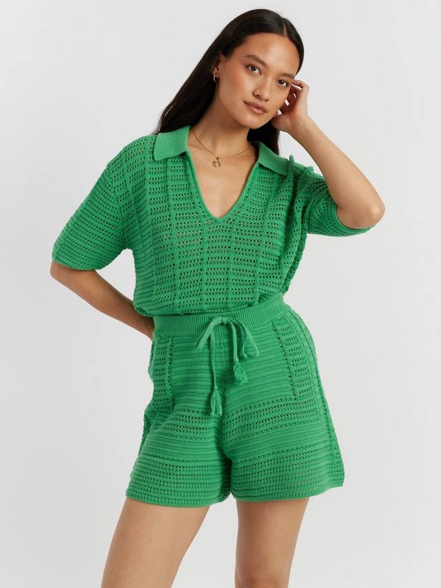 Эта капри, связанная крючком из чистого хлопка, – одно из самых востребованных летних желаний. Свободный крой, открытый V-образный вырез и спущенные плечи. Носите её с подходящими шортами.