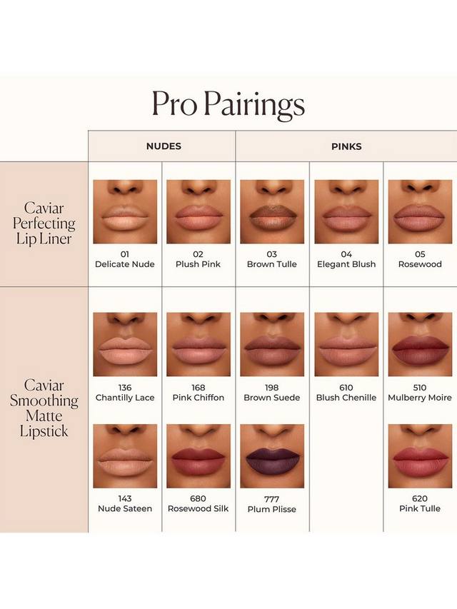 Карандаш для губ Caviar Perfecting Lip Liner обеспечивает комфортное нанесение без липкости и обеспечивает 16 часов безупречной стойкости, сохраняя водостойкость. Он содержит ингредиенты, ухаживающие за губами, и тщательно разработан для создания стойкого контура губ, не растекаясь и не вызывая ощущения сухости. Этот карандаш для губ обеспечивает легкое нанесение благодаря усовершенствованной скульптурирующей формуле, которая дополняет новую матовую помаду Caviar Smoothing Matte Lipstick.