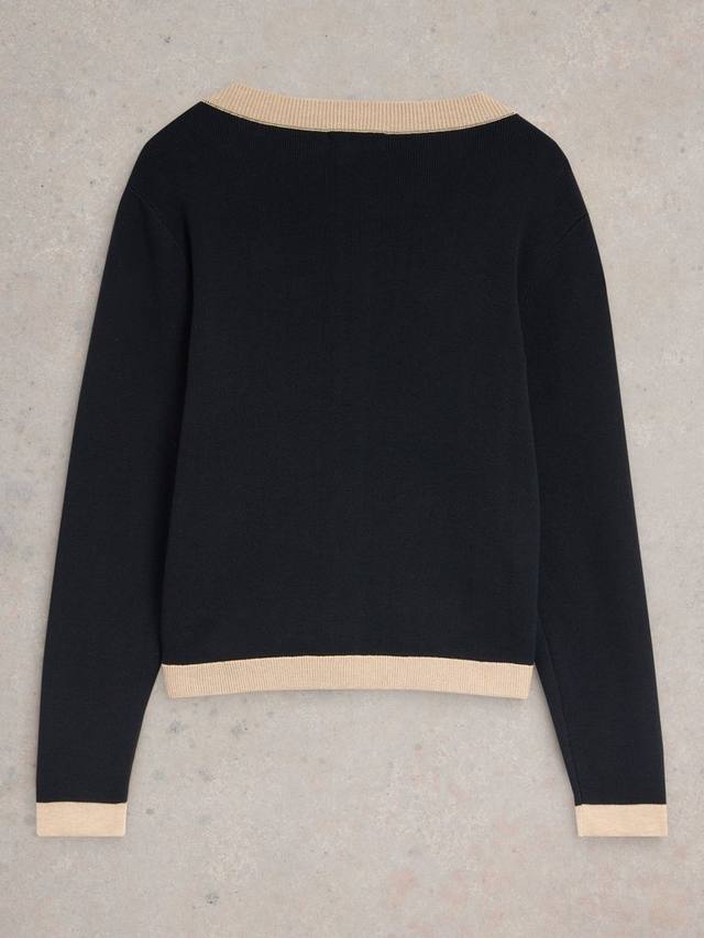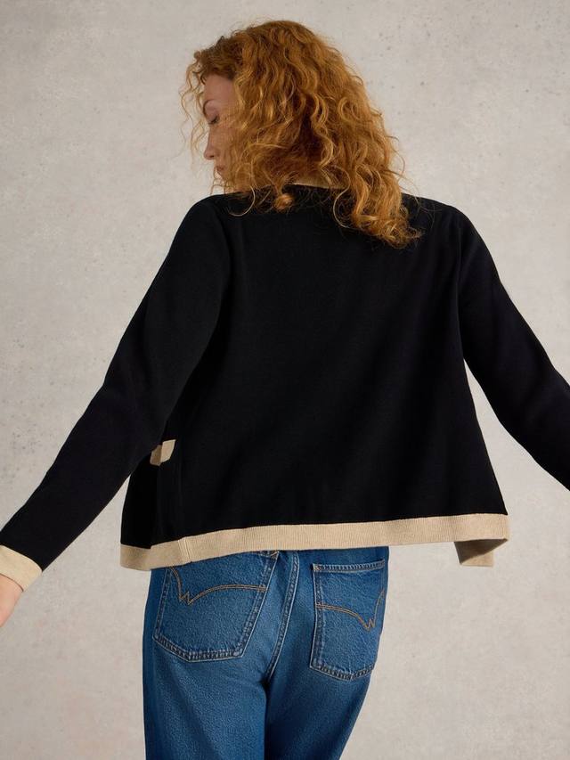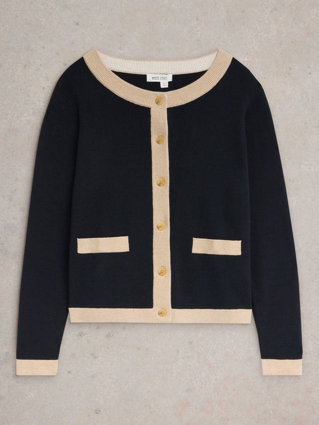 Элегантный кардиган с круглым вырезом, 2 имитацией передних карманов с контрастной окантовкой и планкой.