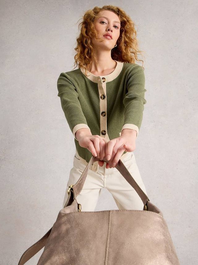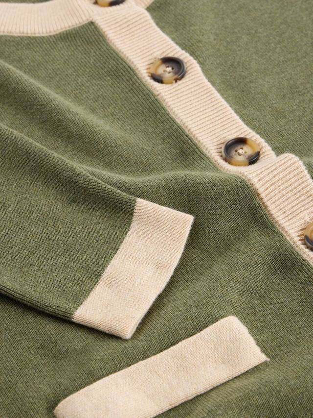 Этот кардиган от White Stuff с простым круглым вырезом выполнен из чистого органического хлопка с 2 имитациями передних карманов и контрастной окантовкой и планкой.