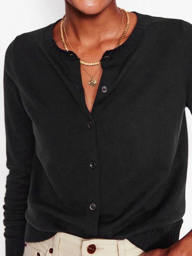 Изготовлен из мягкого хлопка, а замысловатая трикотажная отделка по подолу, горловине и манжетам придает кардигану Emilia изящный вид.