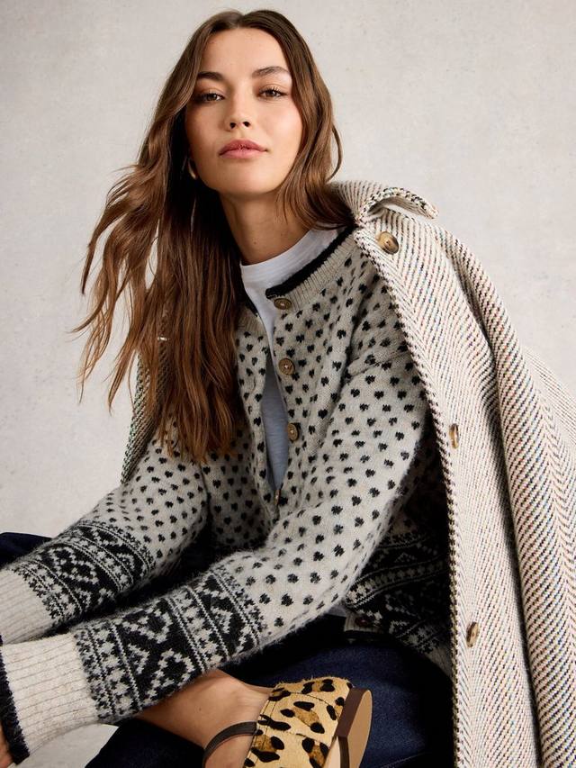 Этот кардиган с узором фэр-айл с сердечками добавит изюминку в ваш гардероб благодаря игривым узорам и удобной посадке. Оставайтесь в тепле и стильно, надевая его на работу или в выходные. Круглый вырез и длинные рукава позволяют носить его каждый день.