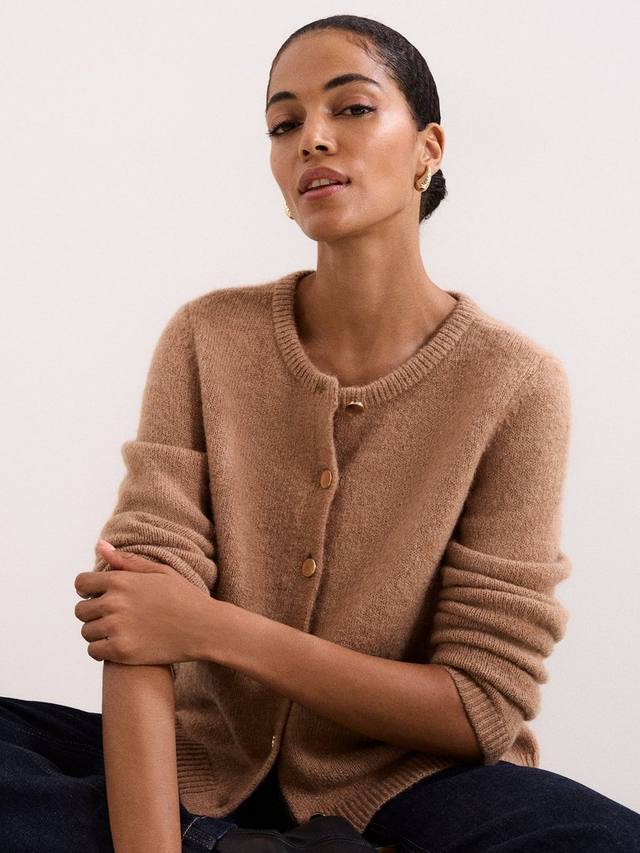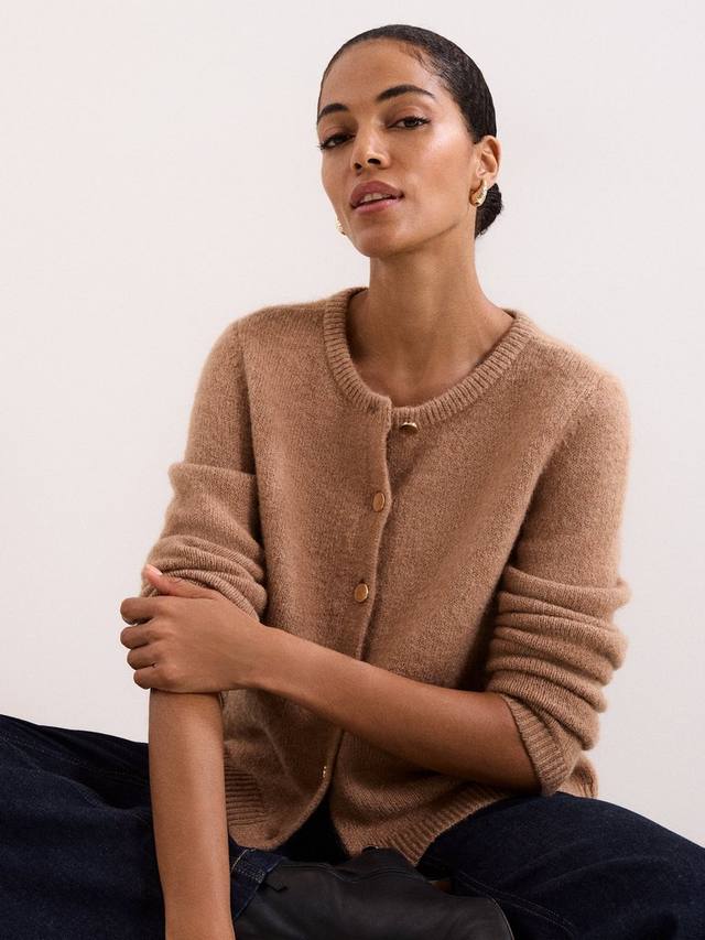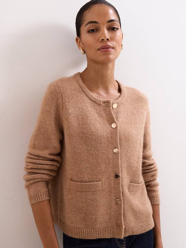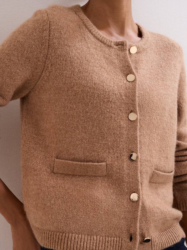 Этот вязаный кардиган красивого оттенка быстро станет вашим любимым повседневным изделием. Ребристый круглый вырез горловины, передние карманы и отделка современными пуговицами. Этот кардиган можно носить как многослойный предмет одежды или отдельно, что делает его идеальным универсальным предметом гардероба на осень-зиму.