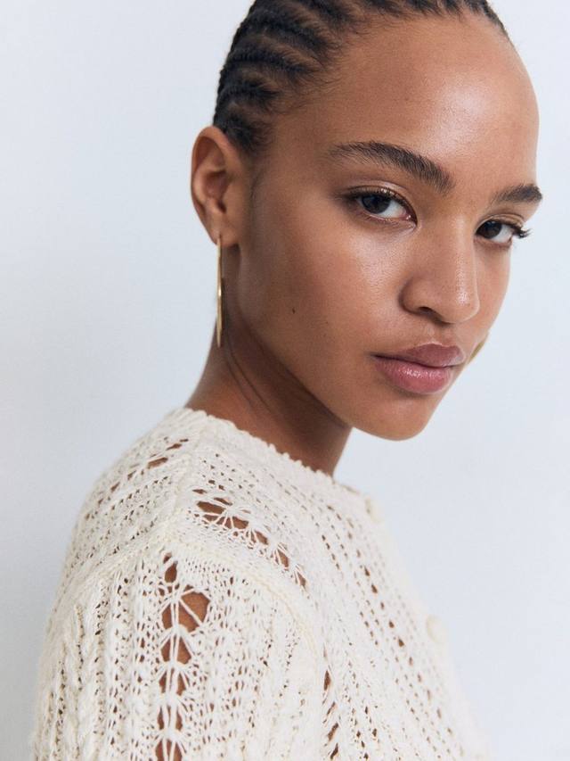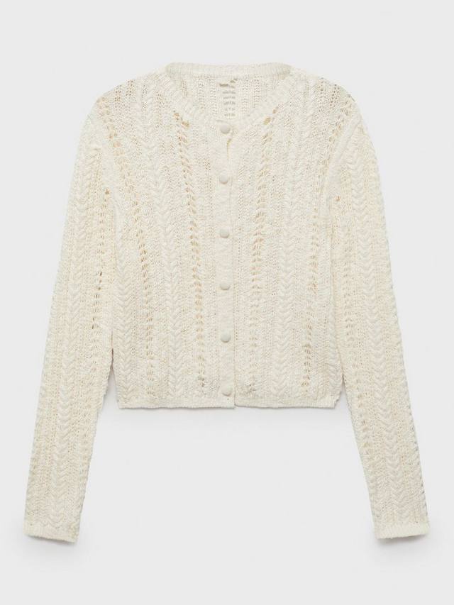 Этот ажурный кардиган от Mango с классическим круглым вырезом горловины изготовлен из чистых хлопковых волокон, известных своей мягкостью и воздухопроницаемостью.