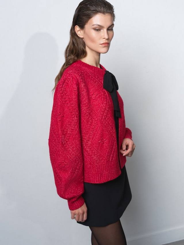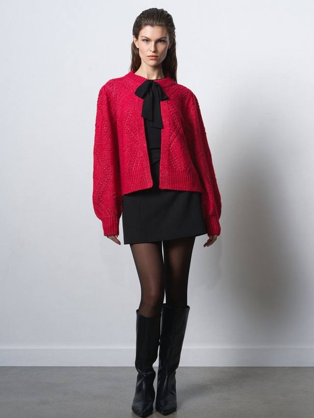 Говоря об уютном шике, кардиган Kitty Bobble Bow – это неподвластная времени модель. Этот милый кардиган из мягкой декоративной вязки бомбочка дополнен контрастным вырезом на ленте и отделкой в рубчик.