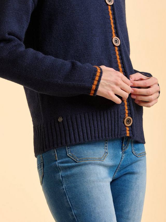 Крупная вязка, свободный крой и ровно столько ржаво-оранжевого цвета, чтобы сделать образ интереснее. V-образный вырез, манжеты и два передних кармана в рубчик делают эту модель практичным выбором для спокойных дней. Наденьте её с любимыми джинсами и отправляйтесь на прогулку.