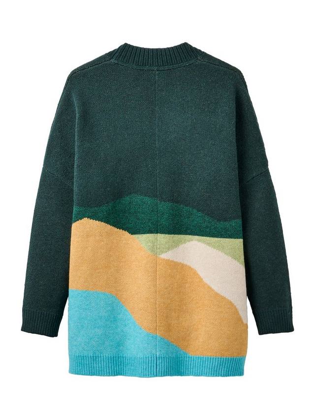 Scenic — классический кардиган свободного кроя с эффектным дизайном, вдохновленным утренними походами в горы.