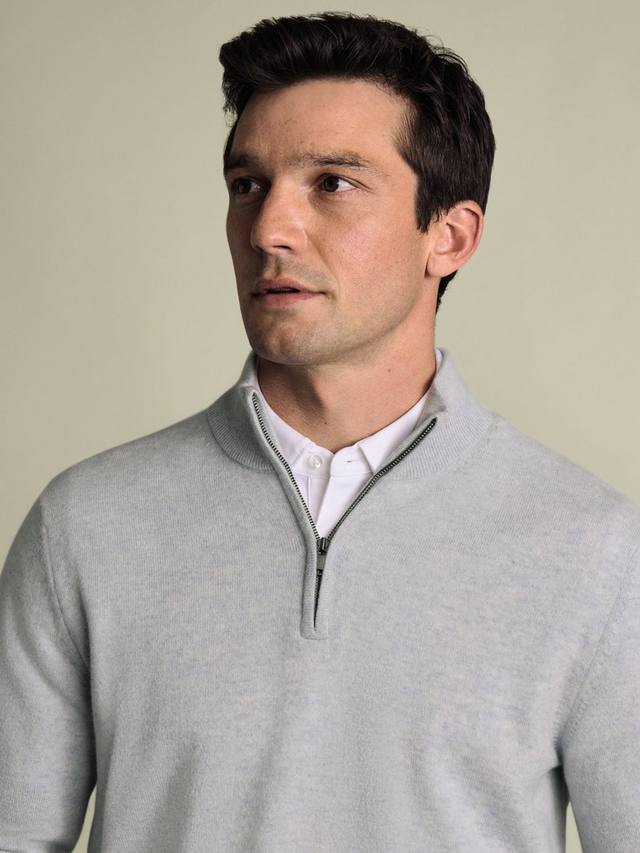 Кашемировая коза приспособлена к жизни в сложных условиях, давая лёгкую, но тёплую шерсть, которая естественным образом регулирует температуру. Роскошный кашемировый трикотаж обладает всеми этими выигрышными свойствами, а также подвергается стирке в готовом виде для дополнительной мягкости. Ребристые края и манжеты сохраняют тепло, а молнию можно носить как расстёгнутой, так и застёгнутой.