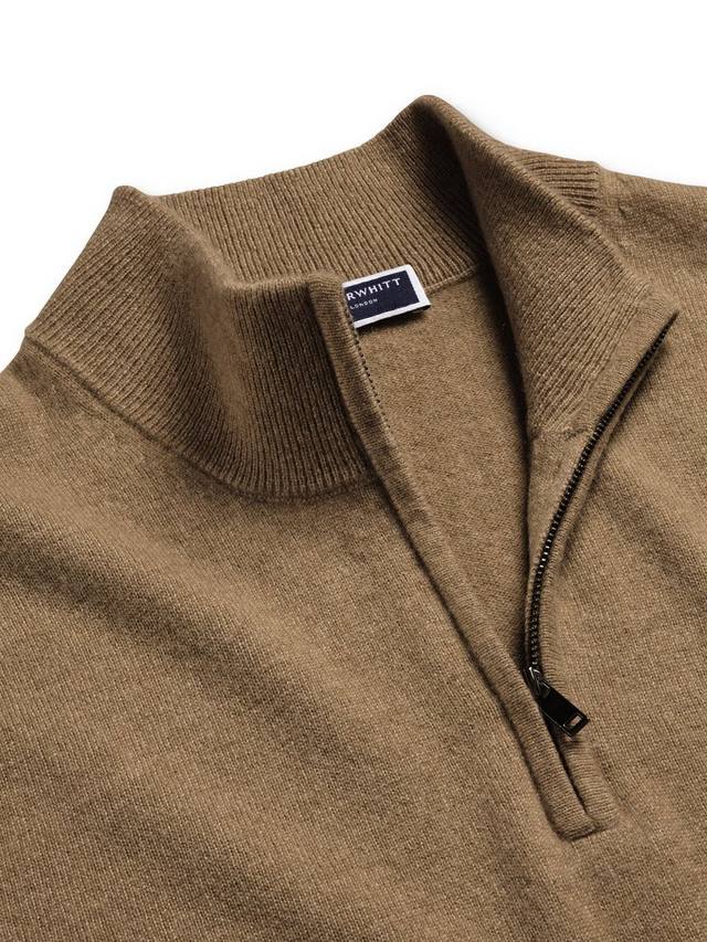 Кашемировая коза приспособлена к жизни в сложных условиях, давая лёгкую, но тёплую шерсть, которая естественным образом регулирует температуру. Роскошный кашемировый трикотаж обладает всеми этими выигрышными свойствами, а также подвергается стирке в готовом виде для дополнительной мягкости. Ребристые края и манжеты сохраняют тепло, а молнию можно носить как расстёгнутой, так и застёгнутой.