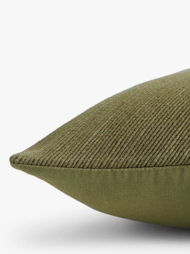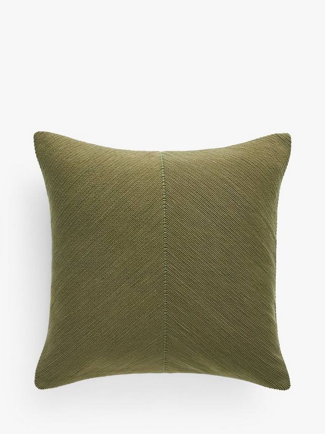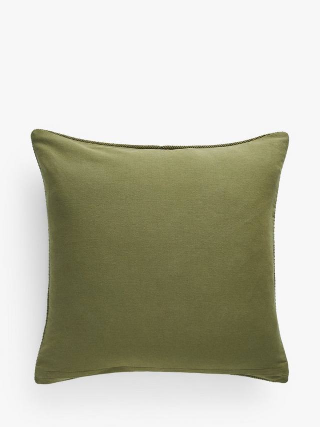 Эта хлопковая подушка соткана с простым V-образным узором и вышивкой, выполненной вручную.