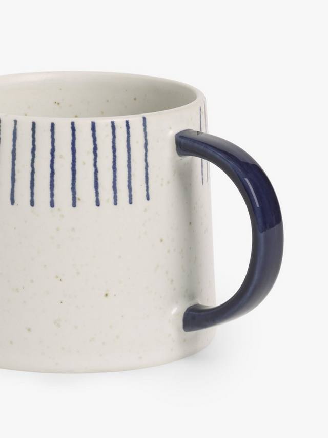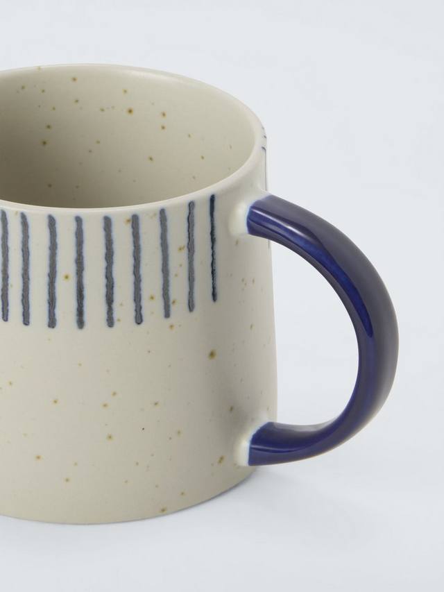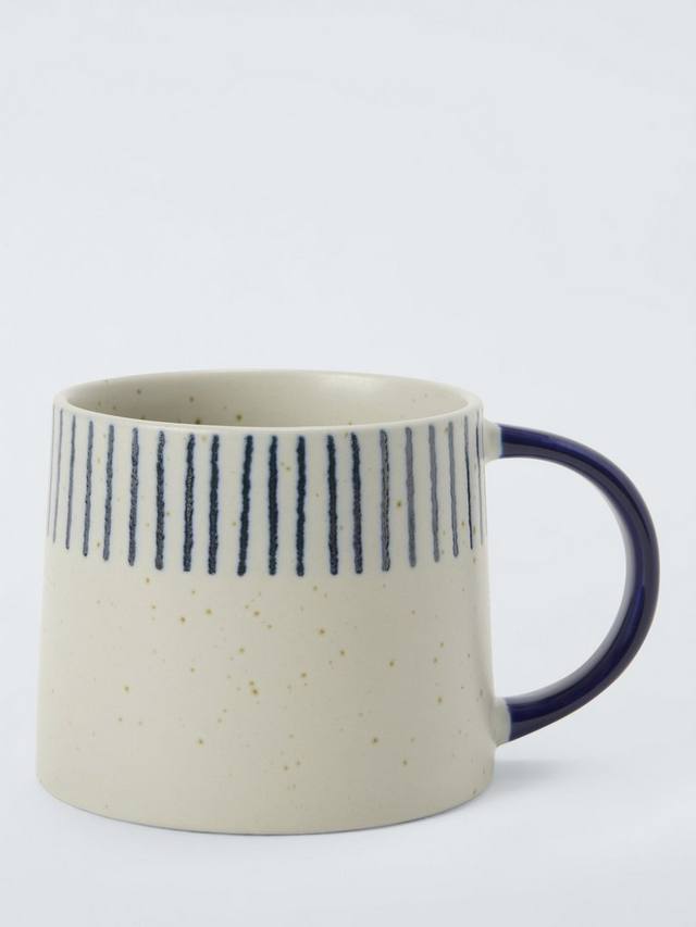Полосатая керамическая кружка с широким дном и контрастной глазурованной ручкой. Можно мыть в посудомоечной машине и микроволновой печи для ежедневного использования.