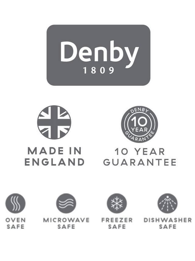 Каждый предмет керамики Denby, изготовленный на гончарной фабрике Denby в Дербишире, Англия, из местной глины, изготавливается вручную с использованием гончарных навыков, передаваемых из поколения в поколение, и может пройти через 20 пар рук. Каждый предмет керамики по-прежнему искусно покрывается глазурью мастеров, а отличительные глазури славятся своей практичностью, долговечностью и устойчивостью к сколам.