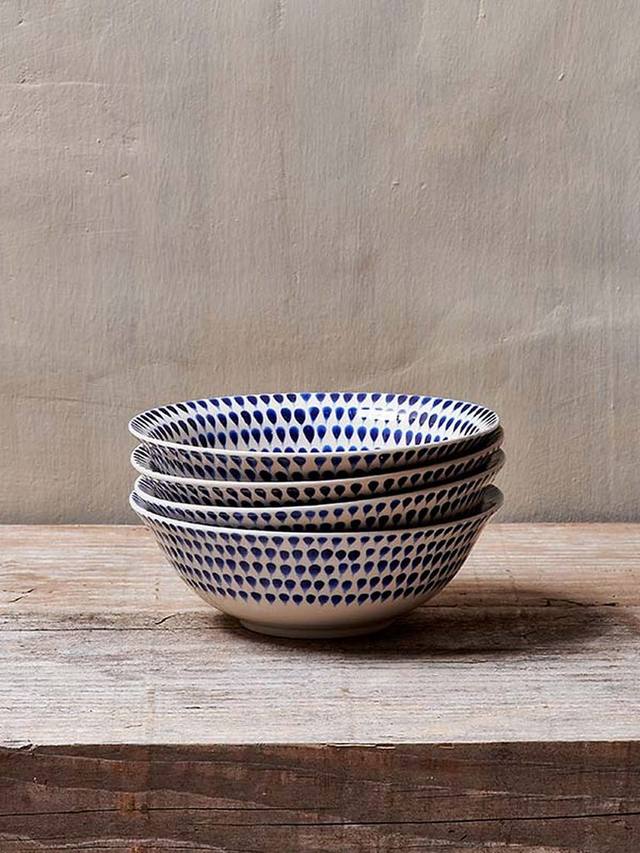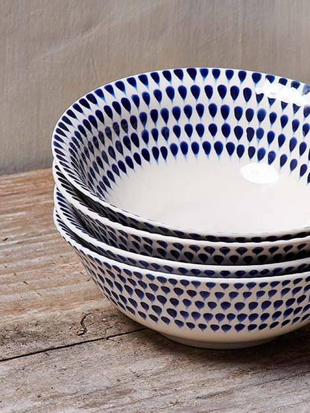 Популярная керамическая коллекция посуды и сервировочных принадлежностей Indigo Drop от nkuku изготовлена опытными мастерами из Вьетнама. Каждый этап производства выполняется вручную с использованием традиционных инструментов и техник: от формовки белой глины на традиционном гончарном круге до росписи каждой капли по краю вручную.