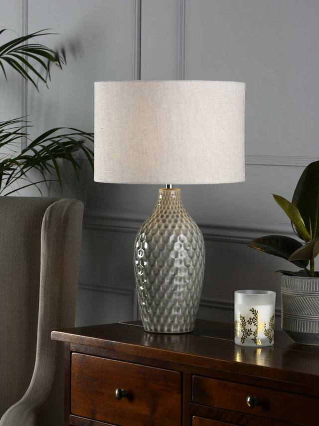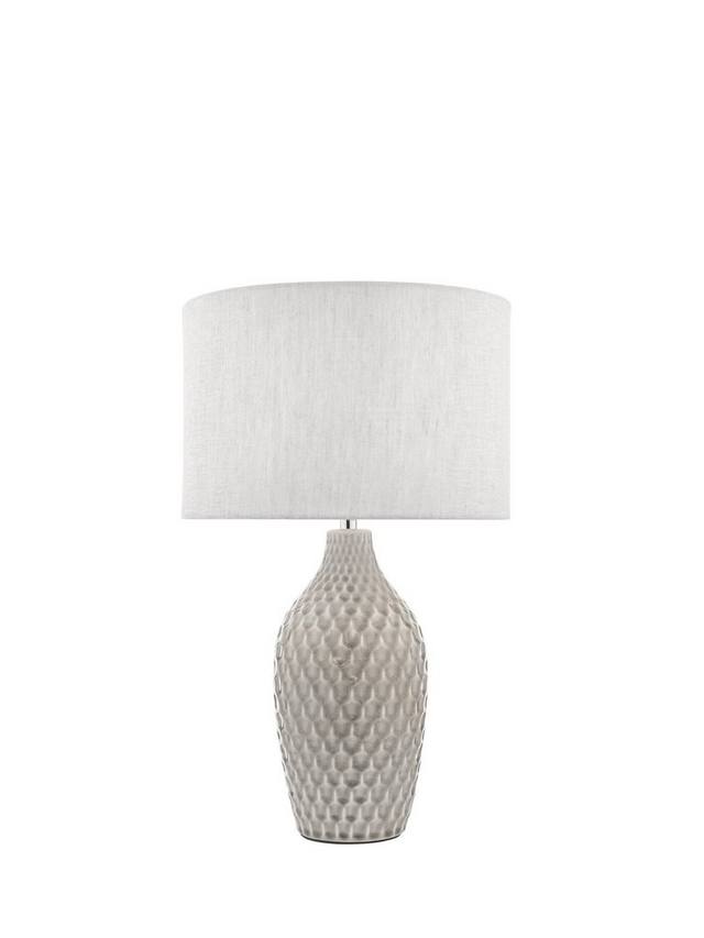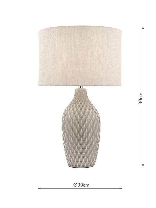 Если вы хотите дополнить интерьер аксессуарами, но при этом сохранить естественные и приглушенные цвета, попробуйте добавить текстуру. Эта настольная лампа поможет вам в этом благодаря тактильному узору в виде сот на керамическом основании с потрескавшейся глазурью. Её простая форма, напоминающая бутылку, плавно изогнута и идеально дополняет абажур из натурального льняного барабана. Требуется одна светодиодная лампочка.