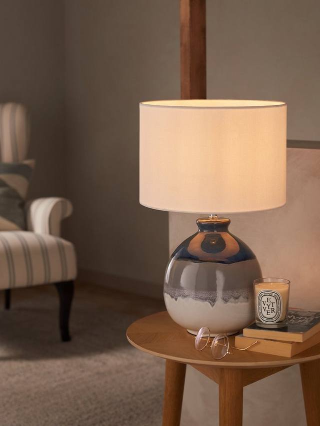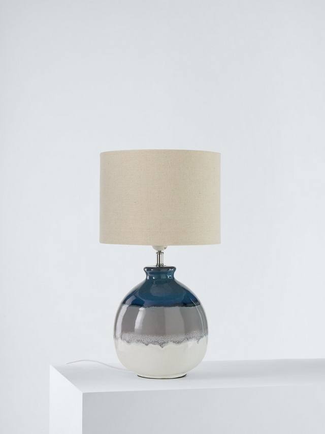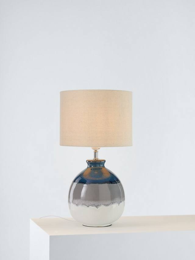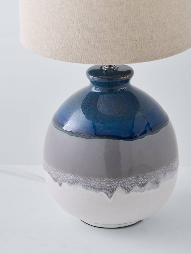 Эта настольная лампа изготовлена на керамическом основании и дополнена льняным абажуром, рассеивающим свет. Нам нравится, как глазурованная отделка подчеркивает глубину цветов основания, выполненного в плавном стиле омбре. Возможны вариации цвета и рисунка, поэтому каждая лампа в вашем доме будет уникальной.
